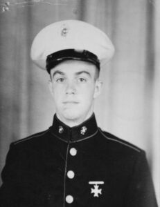 Upon arriving at Parris Island for boot camp, his head was shaved, and Drill Sergeant Croft began calling Griffith and the other “boots” every name in the book to break them down and start building them up as Marines. Griffith says he was afraid of Sgt. Croft but did get used to the verbal abuse. His uniform consisted of two each, of t-shirts, under shorts, pants and fatigue jackets along with shoes and socks and a pith (a cork-like material) helmet. He had to wash clothes every day to be sure he had clean clothes. They were hung out to dry behind the barracks and frequently were stolen by other marines. Griffith’s T-shirts were stolen, and he had to steal one to be properly dressed because he could not buy one. It happened that one Griffith “confiscated” had Sgt. Croft’s name stenciled on it.