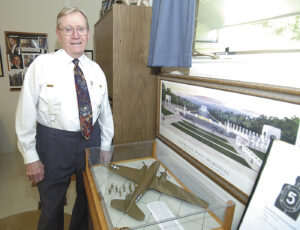 After two short assignments in the states, he was sent by ship to an airfield in New Caledonia to drive an “Oshkosh” a tractor that is used to position aircraft on an airfield. In January 1943, Myers was sent to Guadalcanal to take part in mop up operations on that embattled island – our first offensive action in the Pacific. As part of that effort, Myers grimly realized the Japanese wanted to kill him. On his two patrols in the jungle, Myers said his unit concentrated on snipers in trees and a space 10 feet wide and 20 feet in front of each man. One had to pay close attention or be a casualty.